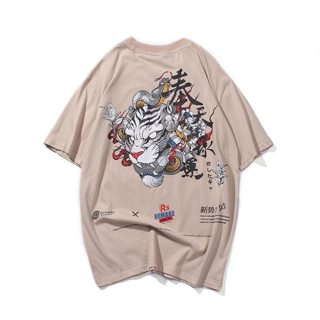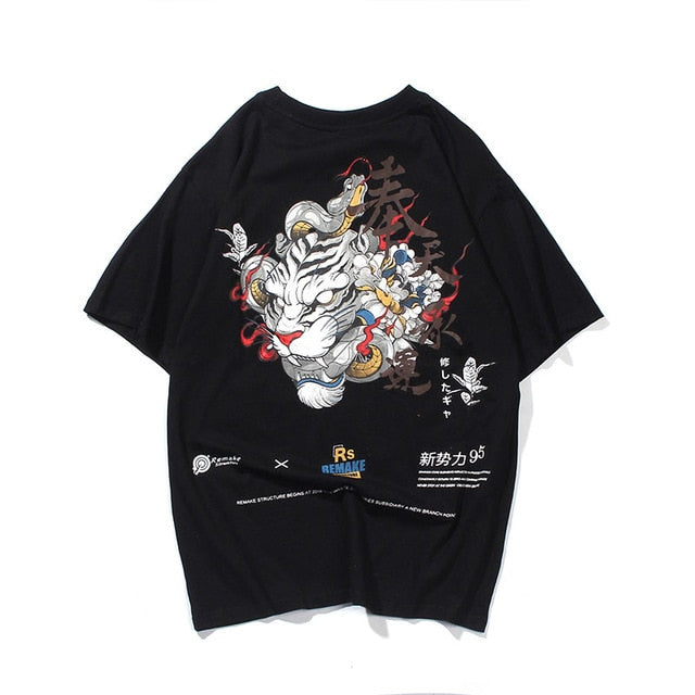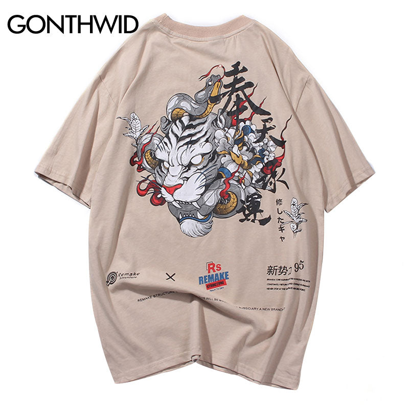 GONTHWID Chinese Character Tiger Snake Printed Tshirts
